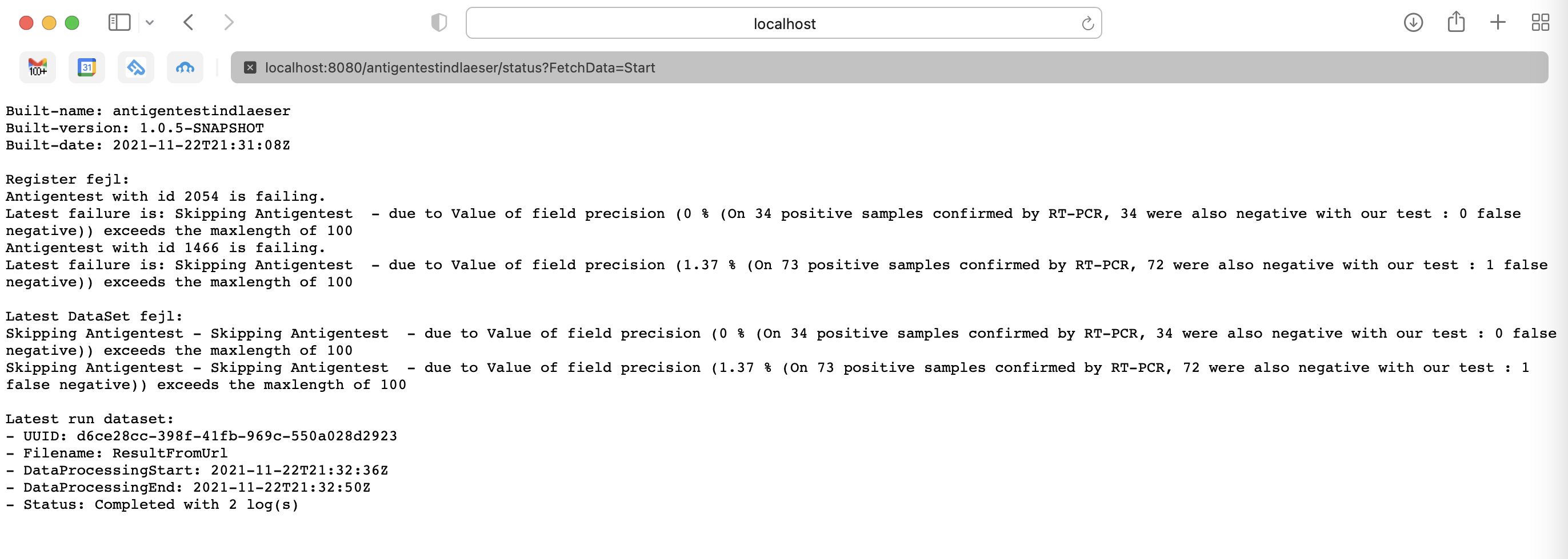 Fejl ved indlæsning af data