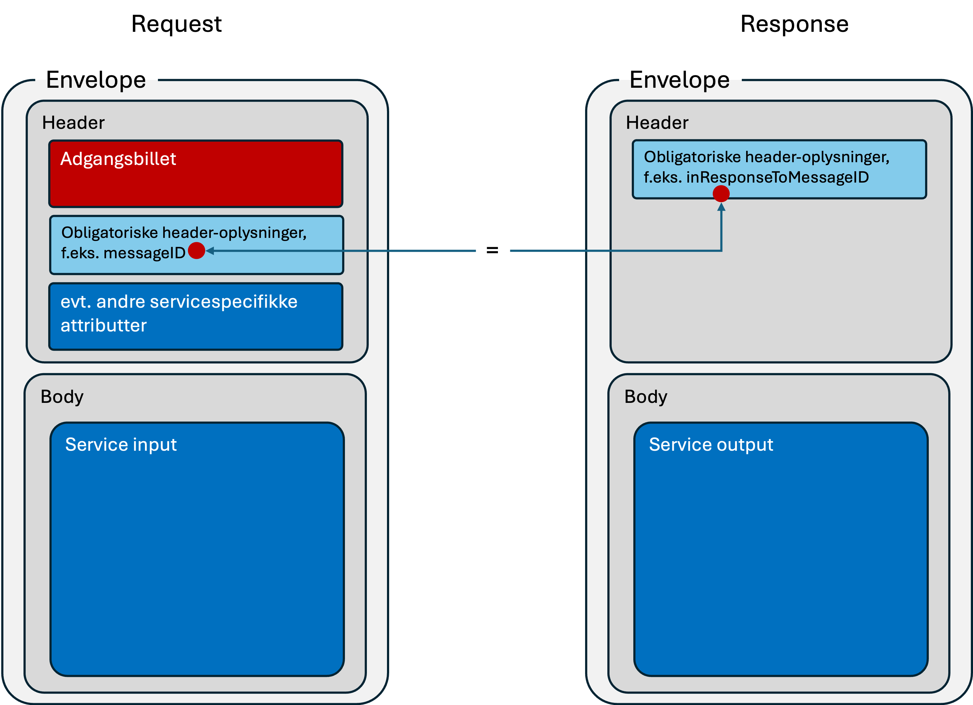 De data, der sendes og returneres fra en service på NSP overholder en standardiseret struktur: