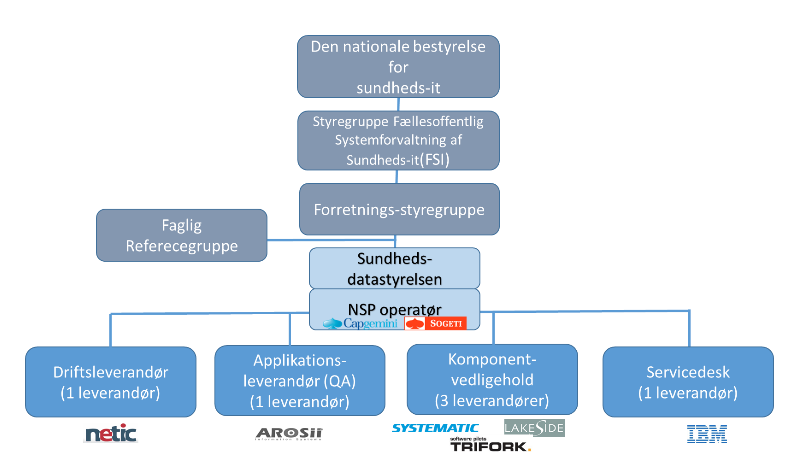 Driftsansvaret for NSP ligger i Sundhedsdatastyrelsen, der entrerer med en operatør, som bistår med den løbende styring af leverandørerne til NSP-infrastruktur og services.