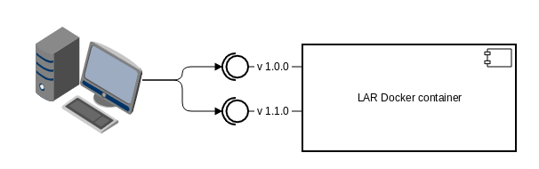 Der findes to strategier for versionering af LAR sntifladen. En hvor der køres flere versioner af det docker image der leveres og en hvor det kørende docker image udstiller flere versioner af snitfladen.