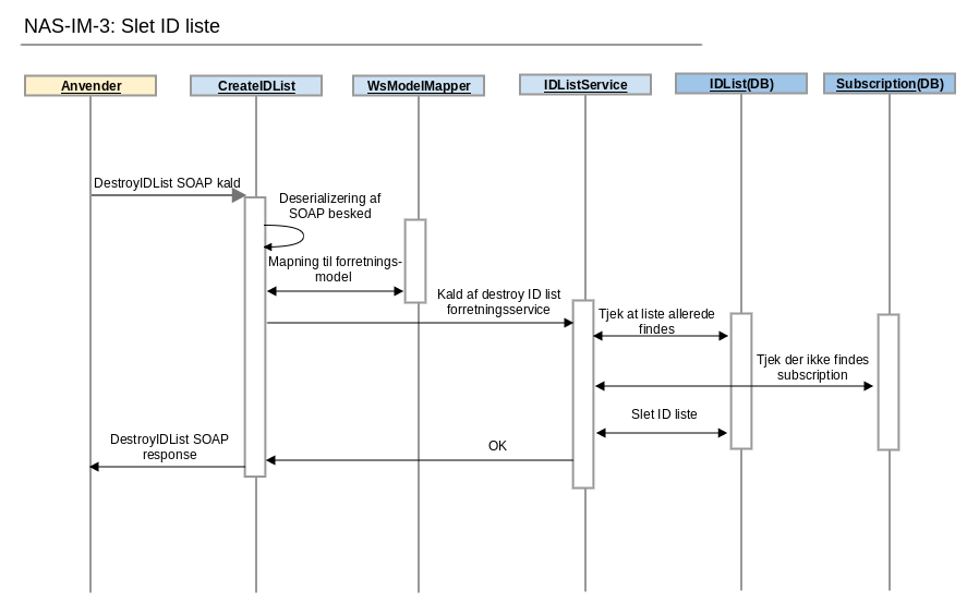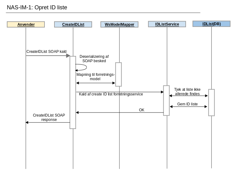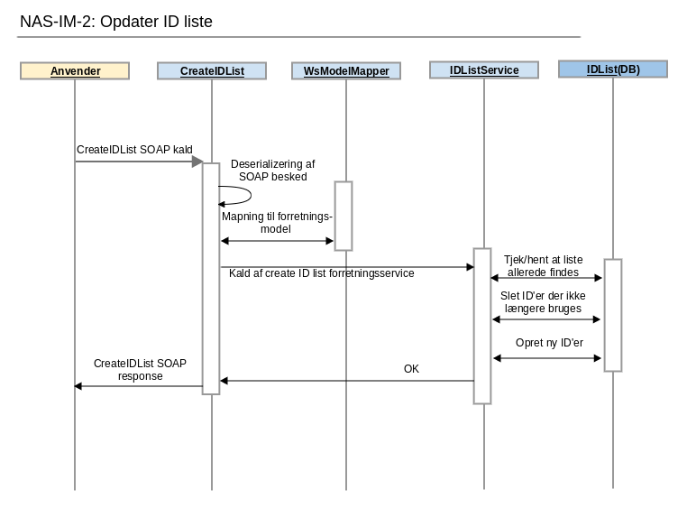 SekvensdiagramNedenstående 3 sekvensdiagrammer viser hvordan man henholdsvis opretter, opdaterer og sletter id lister. Hvert af de 3 sekvensdiagrammer er knyttet til en user story ved samme navn.