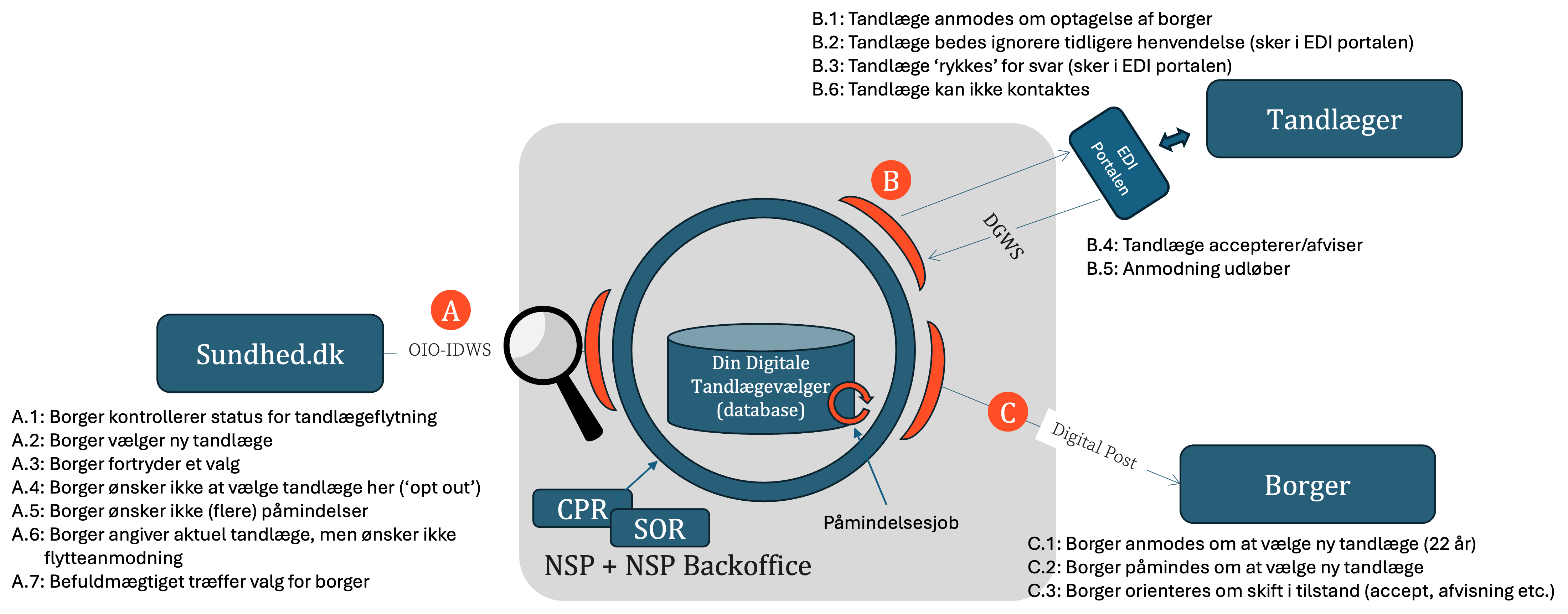 - Når en borger vælger ny tandlæge i "Din Digitale Tandlægevælger" sendes valget til en NSP-service