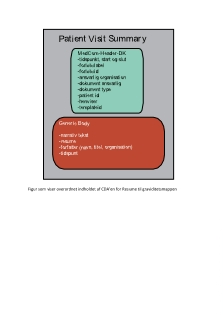 På den sidste del af vandrejournalen side 1 er der en område der hedder: ”Supplerende op-lysninger, herunder jordemoderfagliglig vurdering af ressourcer/risici/belastninger”. Der er behov for en dansk CDA profil for dette område, kaldet Resume. Projektet har i samarbejde med MedCom udarbejdet udkast til CDA for resumé, som anvendes ifm. pilotafprøvningen af digital løsning til graviditetsforløbet.