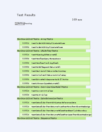 Zip-filen indeholder resultater for de afviklede test cases samt coverage, der er udført med xcov via fastlane, hvoraf eksterne frameworks og mock servies er ekskluderet fra resultatet. Desuden er GMAppData frameworket også ekskluderet, da det kun indeholde autogenerede modeller.