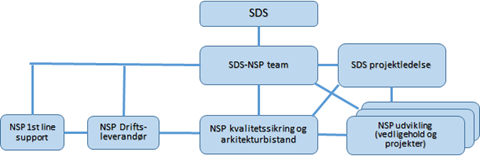 Herunder illustreres organiseringen omkring NSP ift. SDS og leverandører.