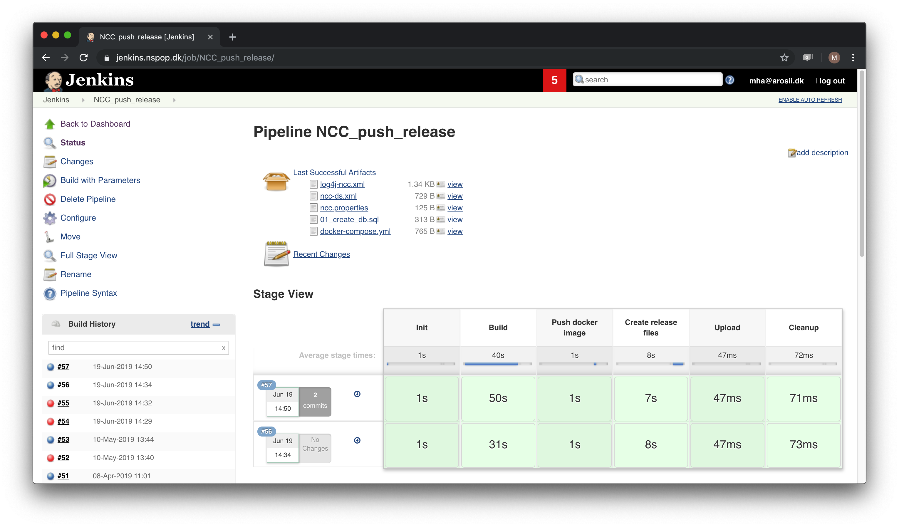 | NCC_push_snapshot | leverandør | NSP konfigureret job | Dette job pusher en :snapshot udgave af dockerimaget, der bygges, til registryet. Jobbet startes af leverandøren. |