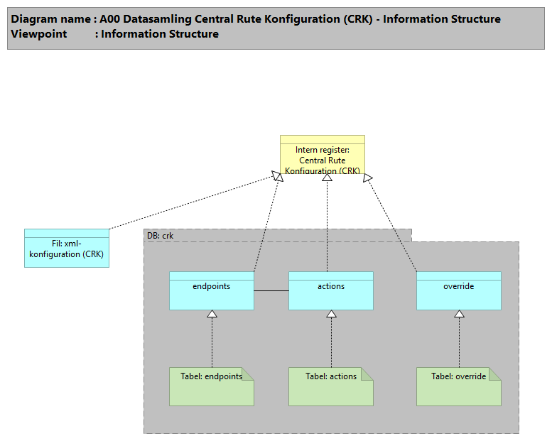 - `inheritedEndpoint`: Såfremt en action "forsvinder" fra den eksterne kilde, bevares den som udgangspunkt i konfigurationen, med angivelse af hvor den er kopieret fra. Relation til endpoints tabellen