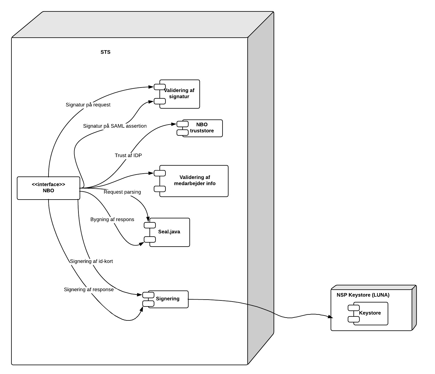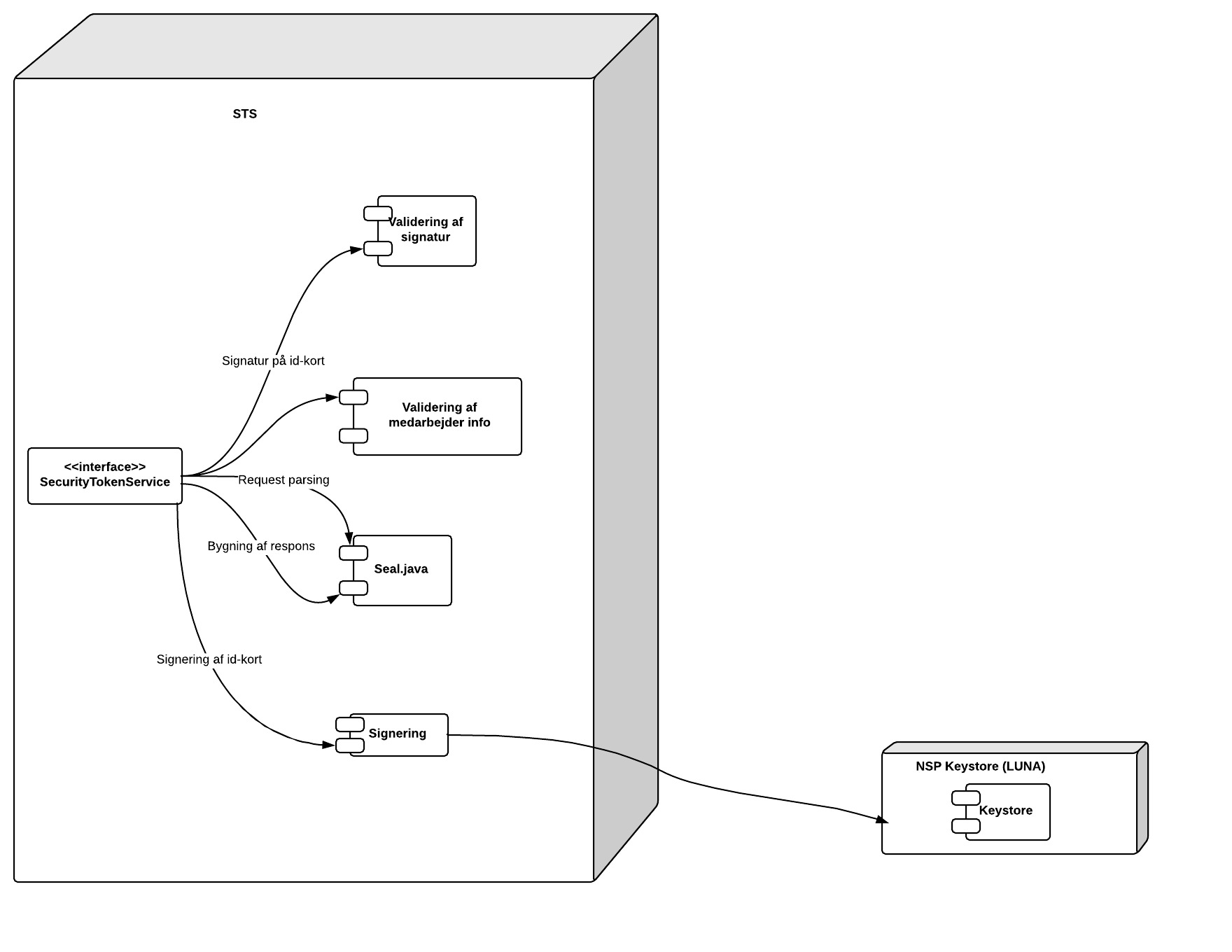 - NewSecurityTokenService -- Udstedelse af STS-signeret id-kort. Erstatter samtidig NameId til et kanonisk format (nødvendigt hvis id-kortet skal veksles til OIOSaml). SOSI Seal biblioteket benyttes af STS til serialisering/deserialisering af web service kaldet samt signering af udstedte ID-kort.