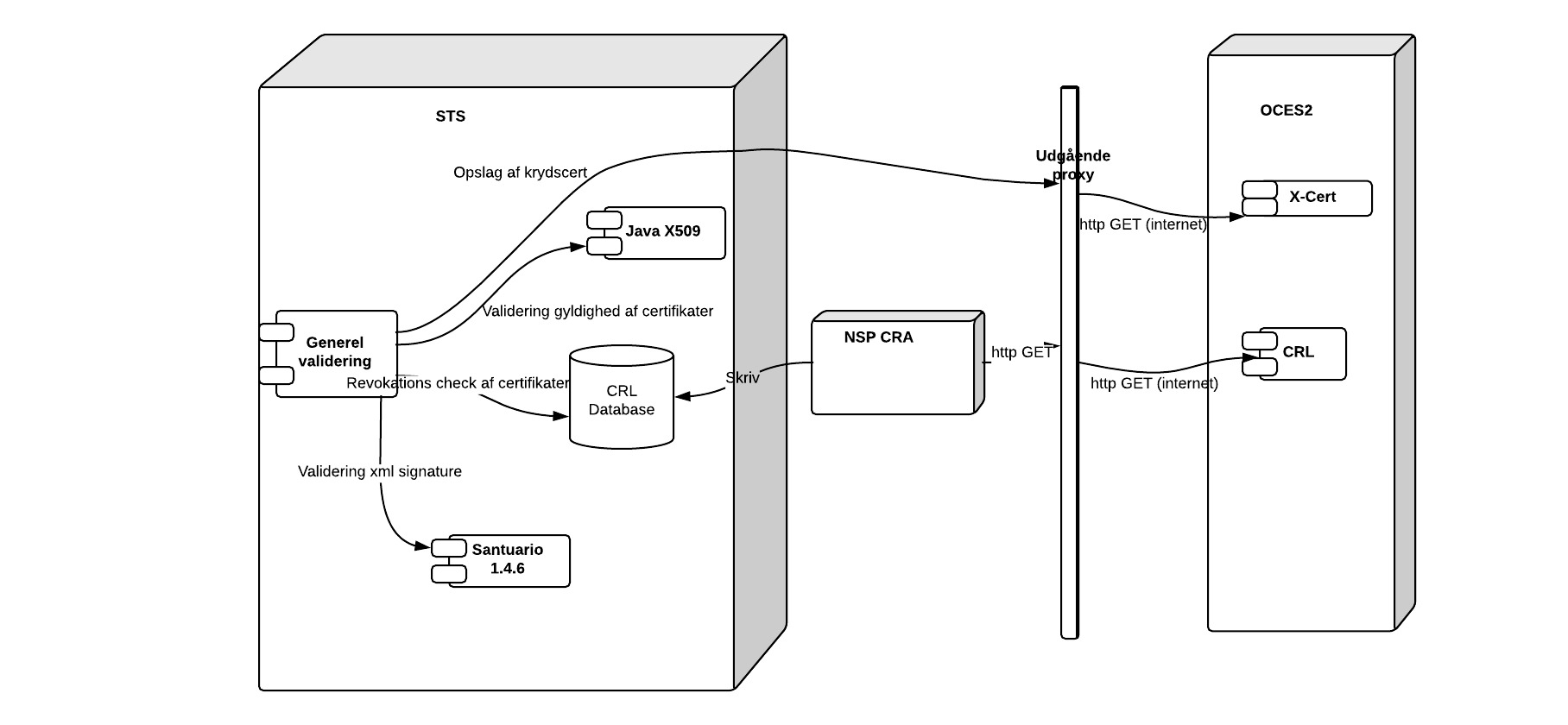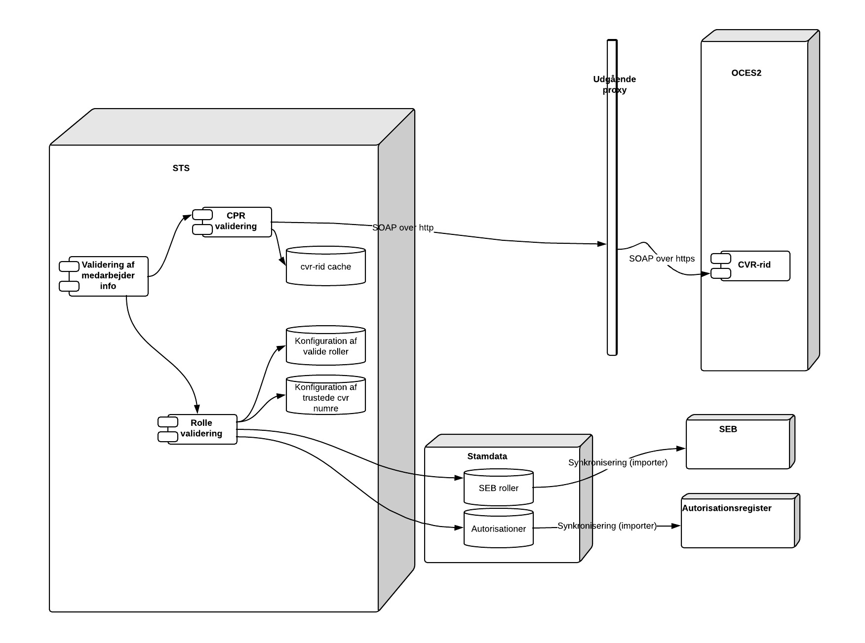 Security Token Service (STS) er en fælles komponent, som kan udstede adgangsgivende billetter på baggrund af OCES-certifikater. En sådan komponent betegnes generelt som en "Identitetsservice" eller IdP (IdentityProvider).